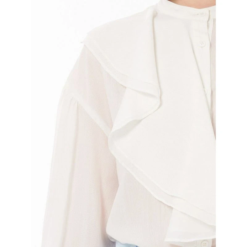 Highlights of Asymmetrical Ruffle Blouse in Ivory White