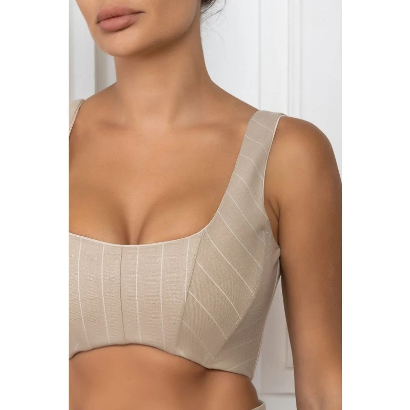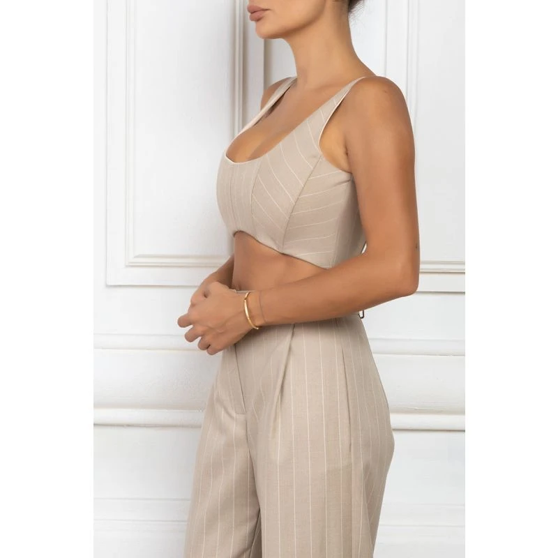 Designed with a square neckline, wide straps and shaped hemline, this pretty crop top will elevate your favorite jeans for your next day drinks look with the girls. Match with our green slit front trousers from the same fabric for a flawless look. The boning structure finish the style, flattering you in all the right places.