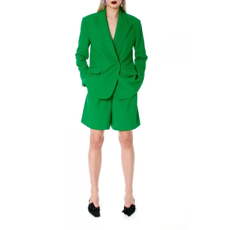 Wide Bermuda shorts with pleats that add space and a feminine character to the design. High waist emphasizing the waist. Convenient pockets hidden in the side seams. Making a perfect match with Ramona Poison Green Blazer.