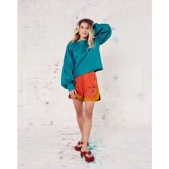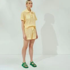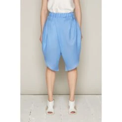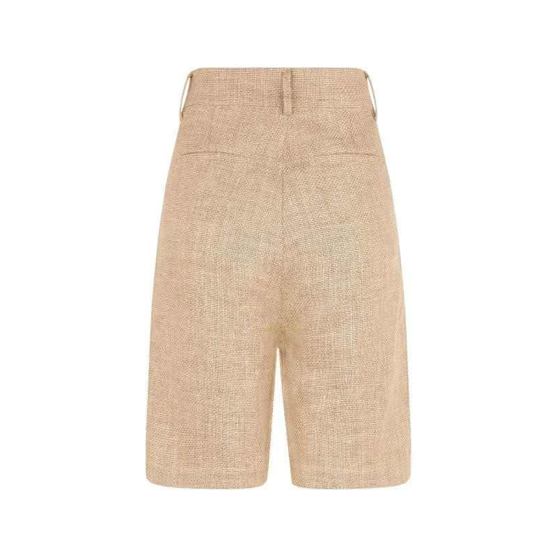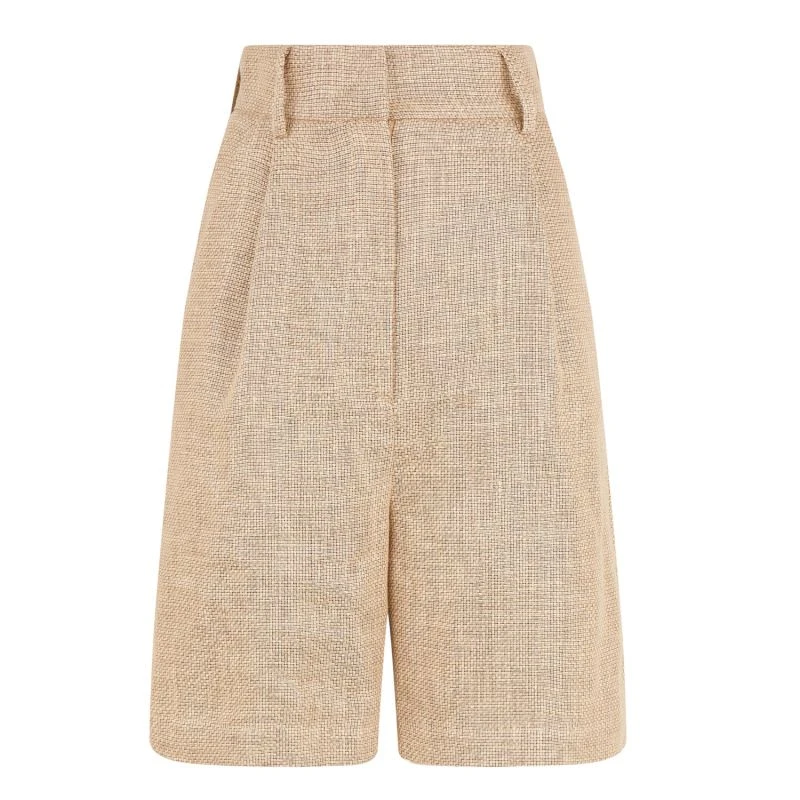 Bermuda shorts that feature a high waist, above-the-knee length, and side slit pockets. Made in England.
