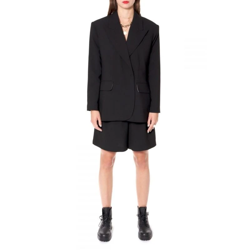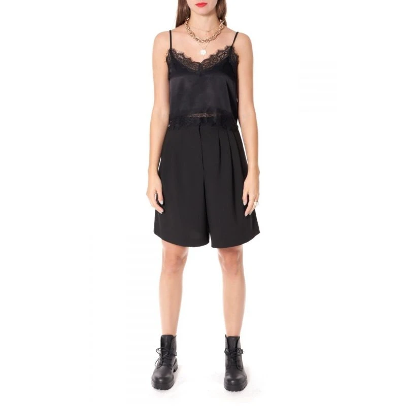 Wide shorts / Bermuda shorts with pleats add space and feminine touch to the design. The high waist emphasizes the waist. Comfortable pockets are hidden in the side seams. Will make a perfect match with Ramona Neutral Black Blazer.