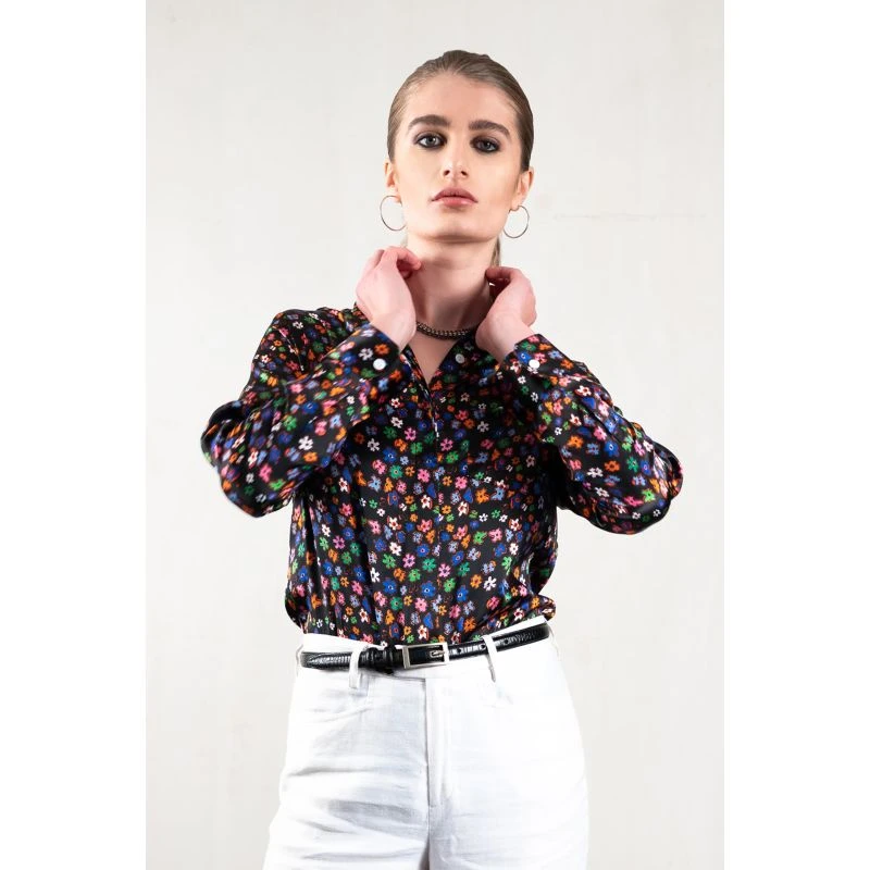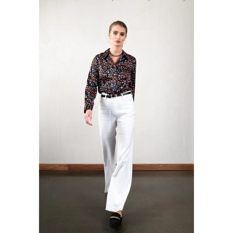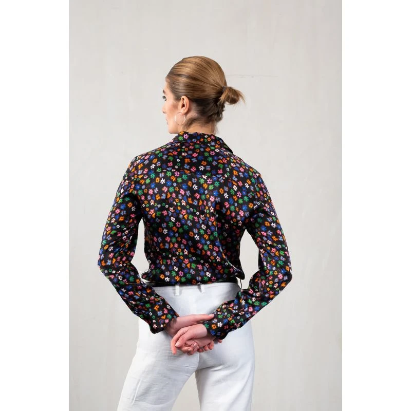 Fresh for summer, the Aurora print classic silk shirt is a simple stylish garment.