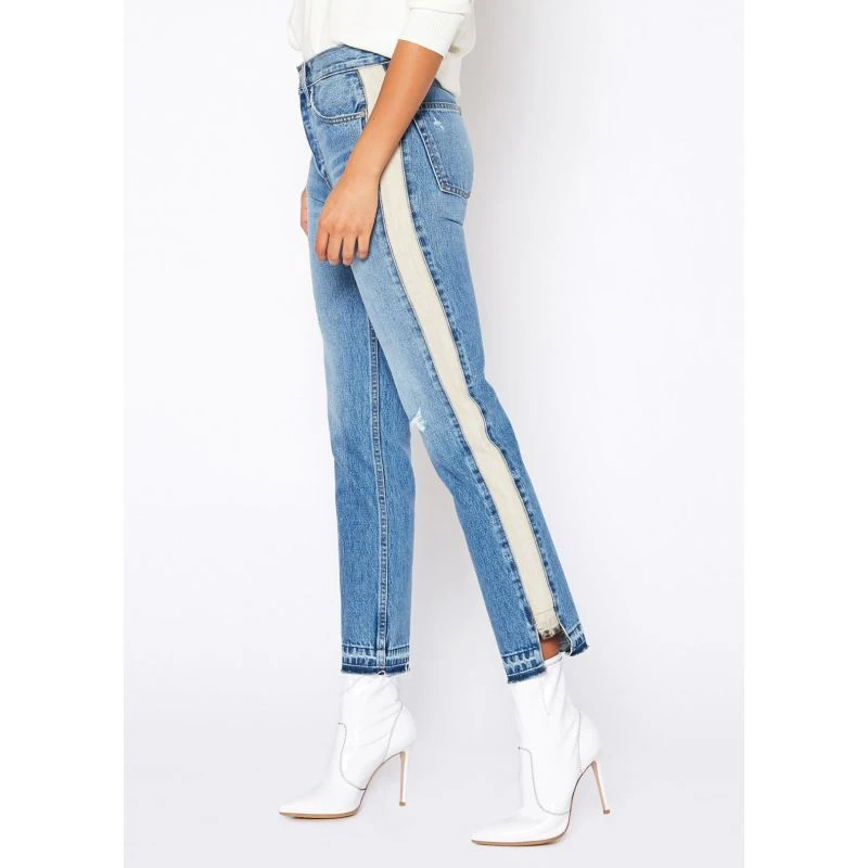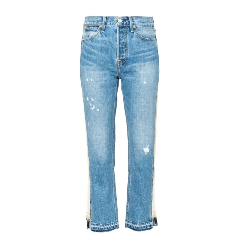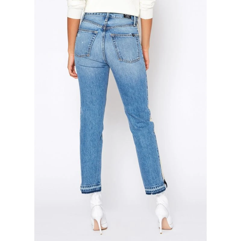 This fit offers a high waist and subtle taper through the leg with a cropped hem.