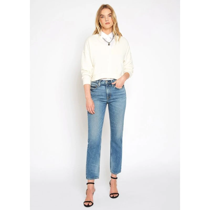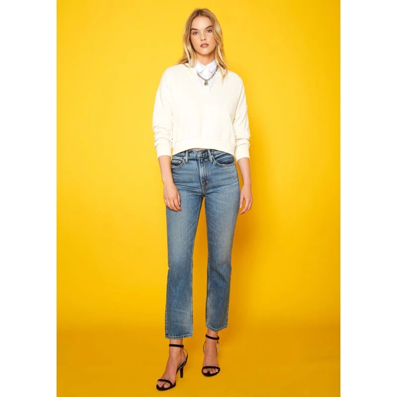 Perfect high rise straight in naturally hand sanded blue. Sturdy nonstretch cotton denim authenticates these straight-leg jeans that deliver a roomy fit you’ll wear all weekend.