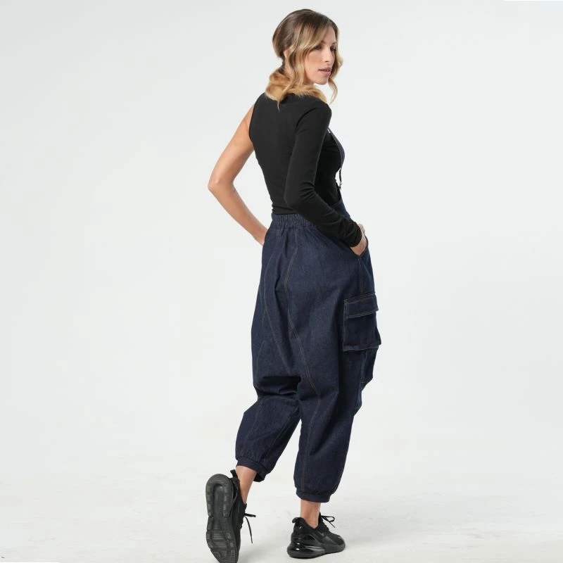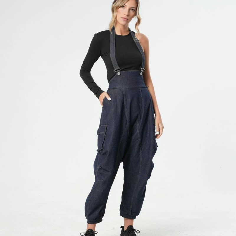 The loose fit is always a comfortable and practical idea and the accents here are the suspenders which can be modified and made longer or shorter by your preference. Those harem pants have pockets in the sides and 2 more cargo ones at the legs.