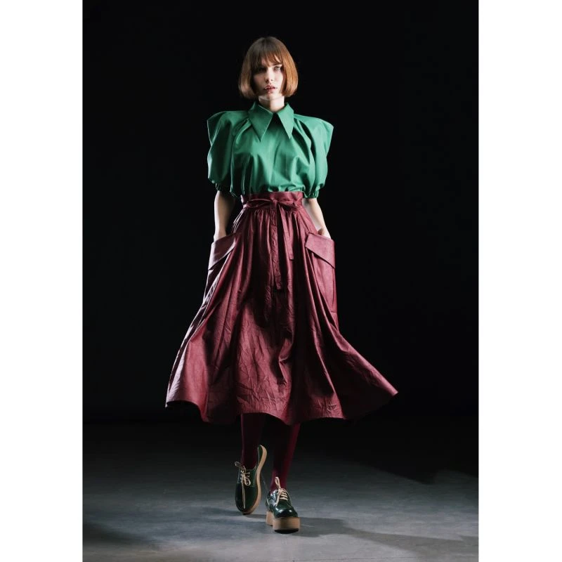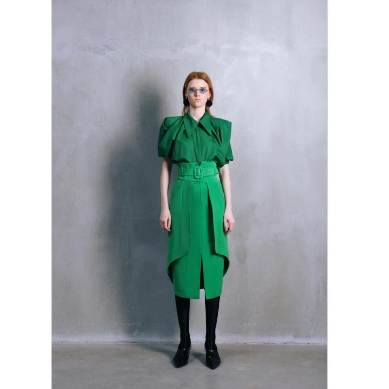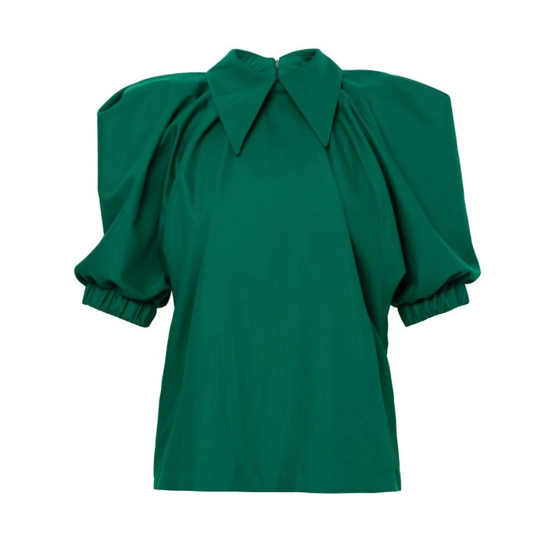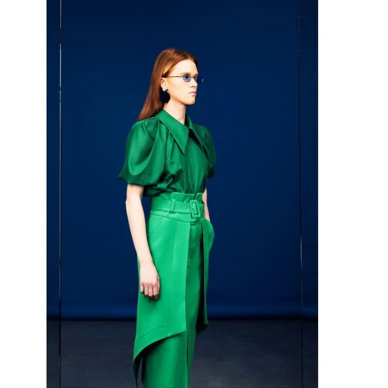 The blouse from the new collection by JA is made of a medium-density fabric, stretched slightly and does not wrinkle. The design decision was made to make an unusual cut of the sleeves with pleats and an elastic band. In this blouse, you will surely feel unique and stylish. Pairs with any pants or shorts. There is a hidden zipper at the back for easy use.