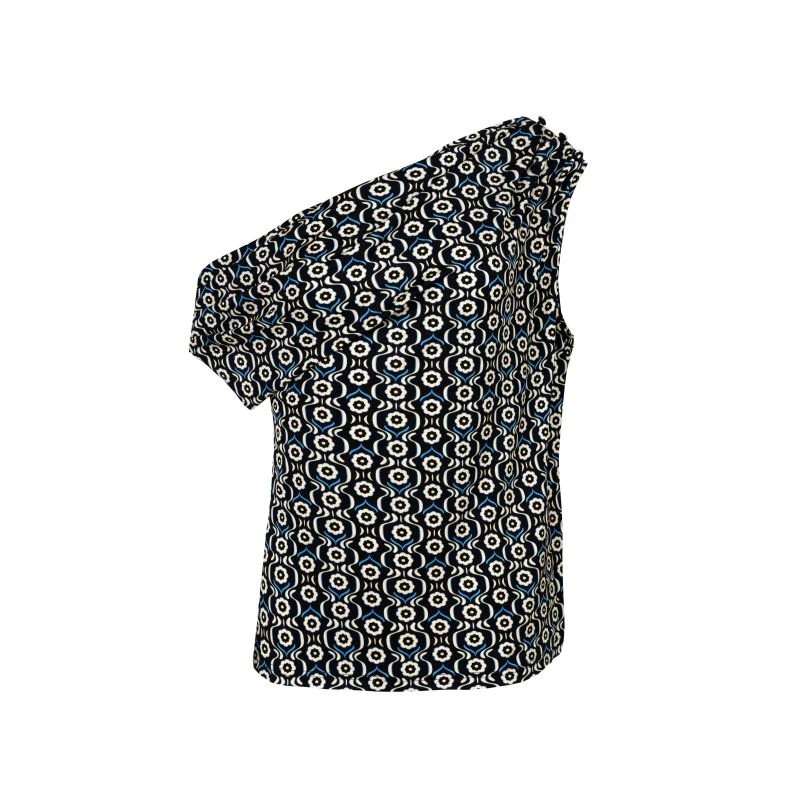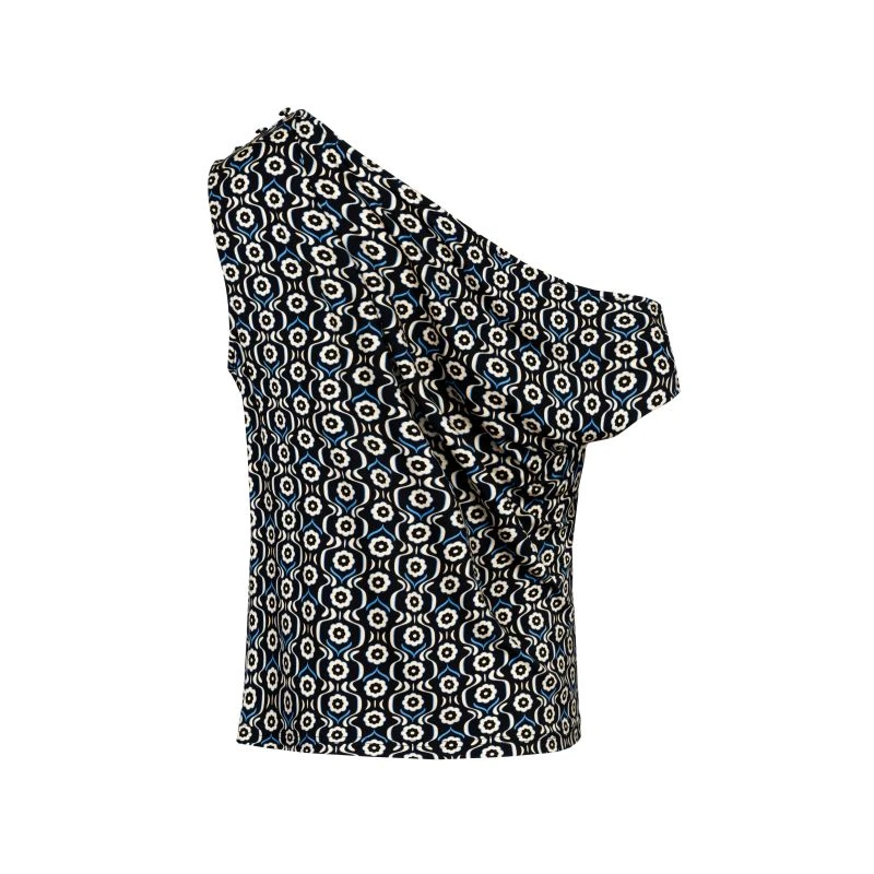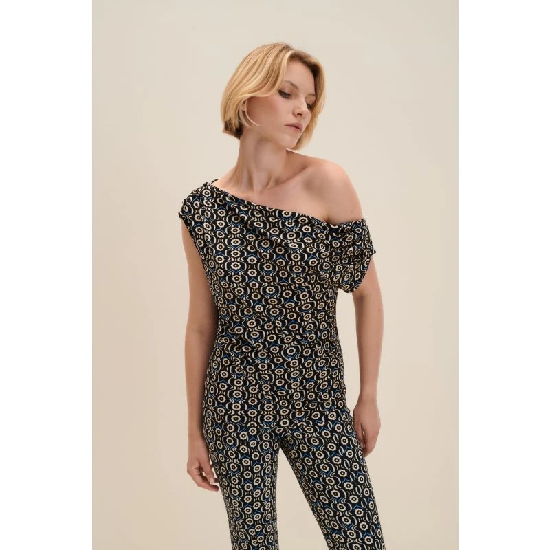 Made from comfortable stretch-jersey, this top has a draped neckline, which slopes elegantly off one shoulder.