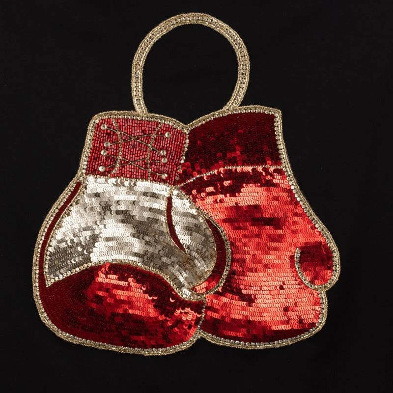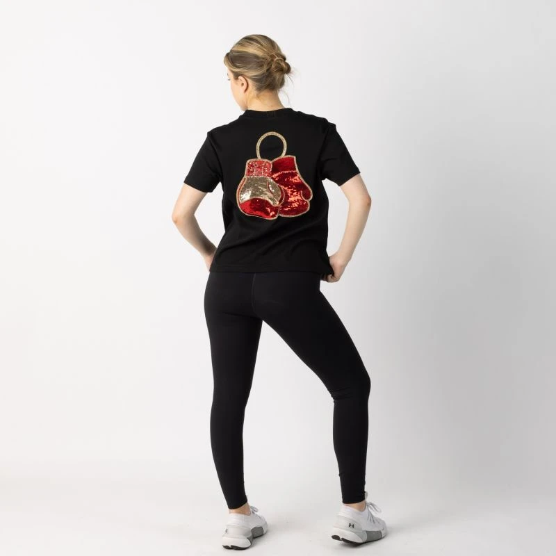 Our sporty T-Shirts teamed with a hand embellished set of striking red Boxing Gloves makes this the perfect piece for the glamourous active lifestyle. The hand embellished sport motif has been skilfully handcrafted and bought to life by our skilled craftspeople using the highest quality materials, the impeccable attention to detail makes this T-shirt a standout piece to add to your active wardrobe.