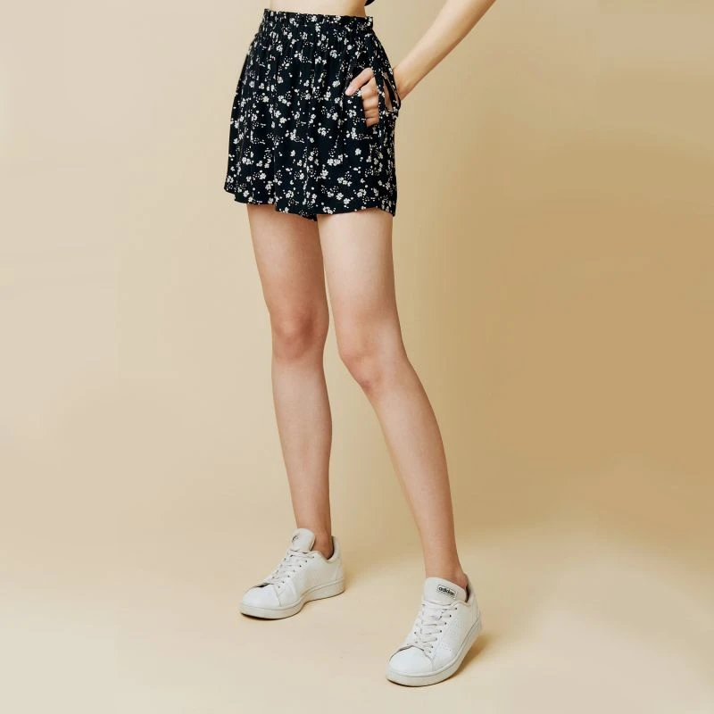 Black, white and a little bit of red. These flattering shorts with an elastic drawstring are perfect for pool time, before and after.