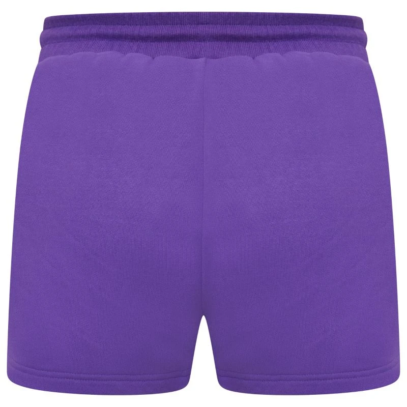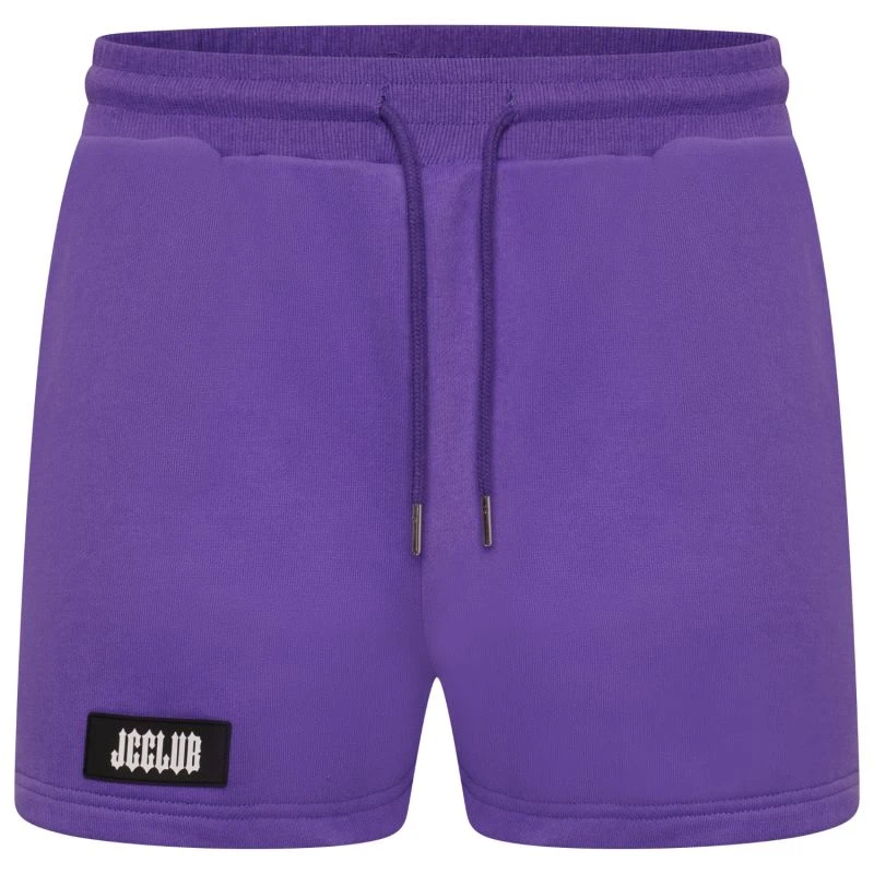 Track Shorts in Purple. Elasticized waistband. JCCCLUB rubber stamp front leg.