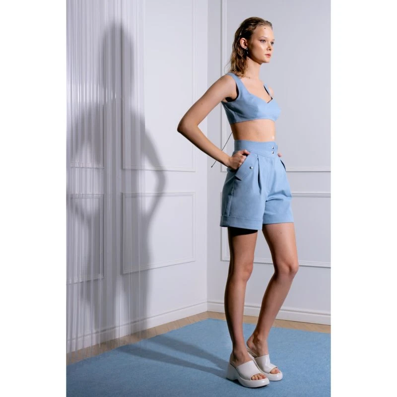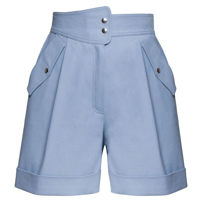 These high-rise denim shorts come in a flattering fit-and-flare silhouette. Cut from stretchy, lightweight cotton blend, this style is decorated with oversized patch pockets and cuffed hems that create a playful, feminine look.