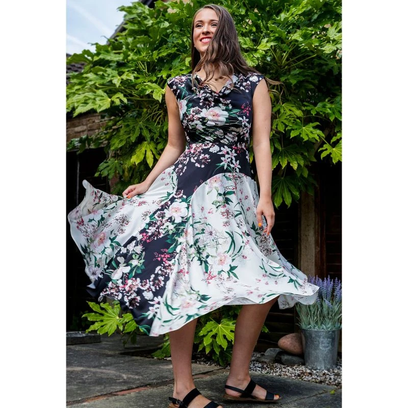 The Kelly dress is one of an array of various floral designs on offer within our SS20 collection. Its unique beauty embodies the essence of summer with its bold colour combination and flowing fit that moves effortlessly as your walk. The contrasting colour combo transforms this traditional floral number into a statement piece every summer wardrobe needs.