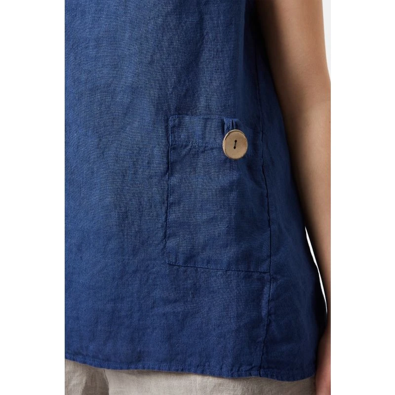 For the Summer balmy days, this will be your go-to vest top. Featuring an A-line fit and cute side pocket with a button, wear it with your favourite jeans or linen trousers