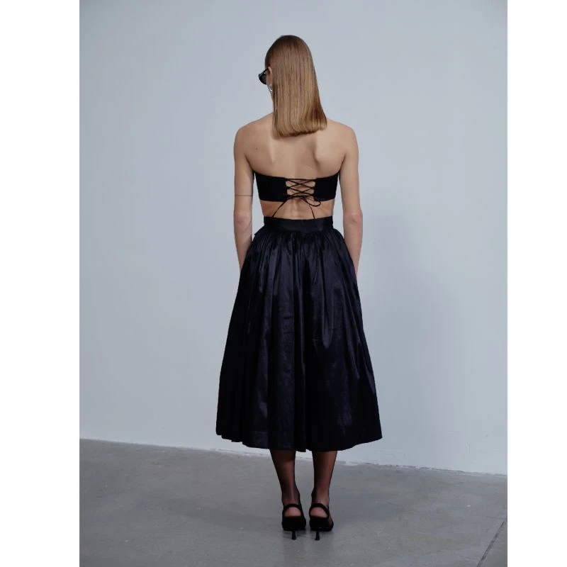The taffeta forming Nazlı Ceren’s cropped Lou Lou top is crafted from lustrous moiré with a strapless neckline and cross back.