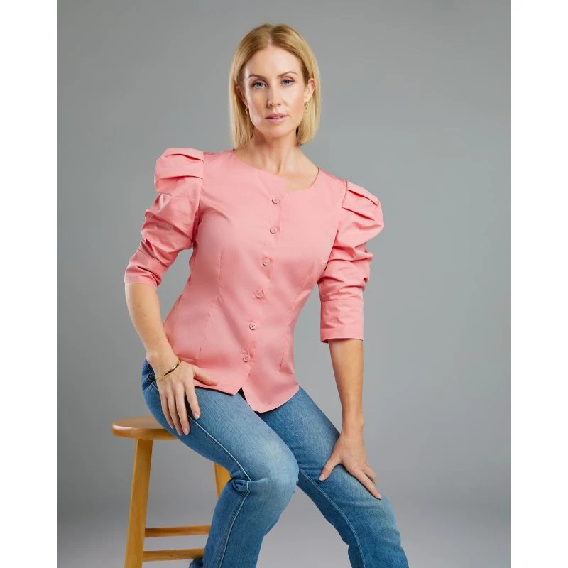 This blouse’s unique design elements offer contemporary elegance, distinguishing it from conventional blouses. It pairs well with our Mai Skirt, Loulou Pants, or even your favorite jeans, making it a versatile piece for any occasion, from formal to casual.