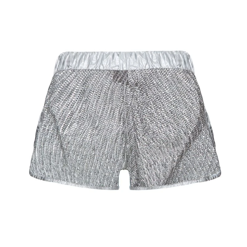 -Shorts developed in metallized mesh scren, waistband with internal elastic and pockets with elastic fit. Cool and charming piece to accompany you in your day to day routine.