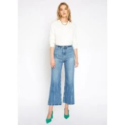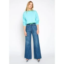 Spirited and bright, the Newsmash print is the heart and soul of Elsie & Fred. A bright collage graphic print features across these super flattering bootcut jeans.