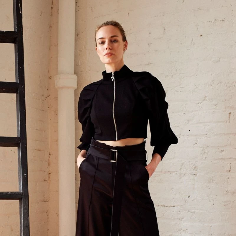 Casual but stand-out piece with puff sleeves and Triangle metal zipper