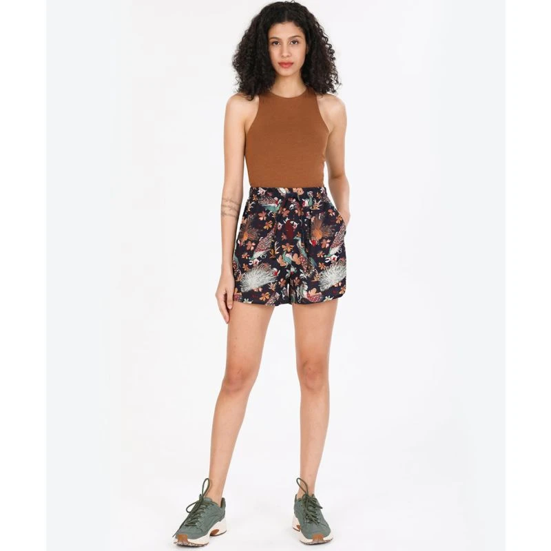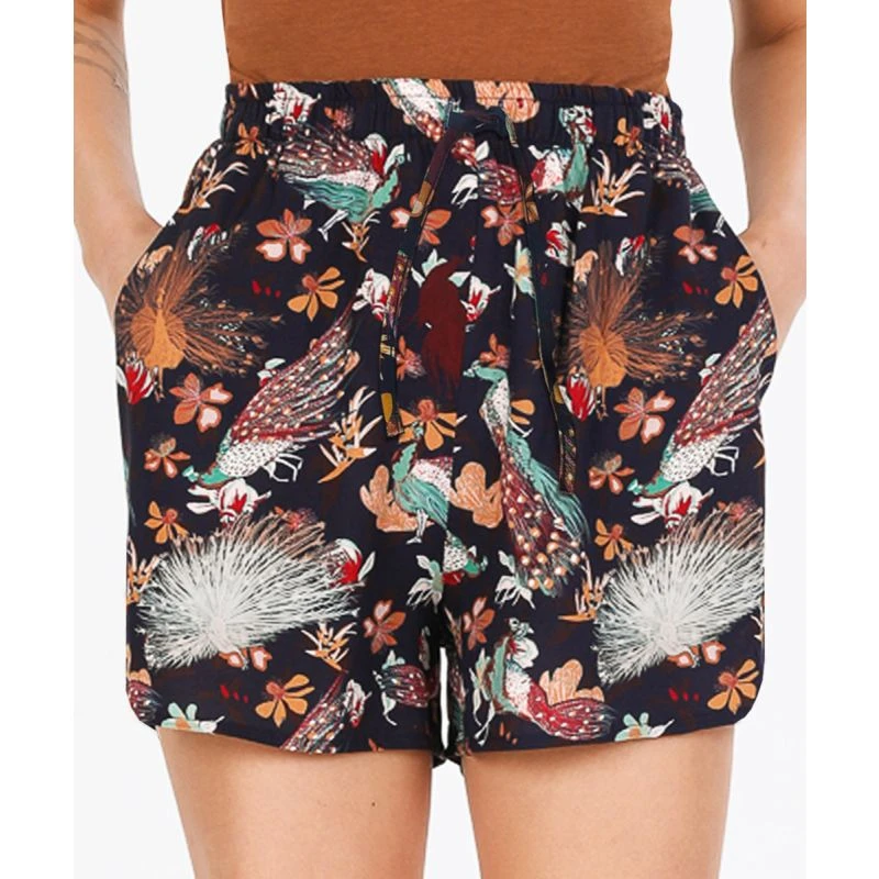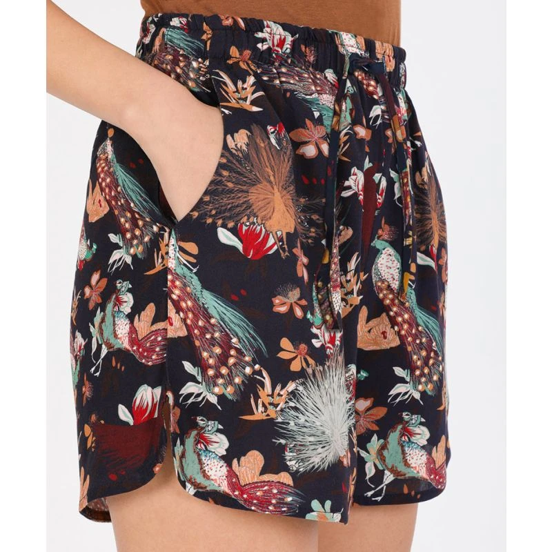 Embrace the vibrant allure of peacocks with Anou Anou’s botany print boxer woven shorts. Featuring a comfortable elastic waistband and convenient pockets, they offer both style and functionality. Create a stylish summer look by pairing these shorts with a chic tank top for a relaxed and effortless ensemble. Alternatively, you can wear them alone with a comfortable T-shirt for a laid-back yet fashionable vibe.