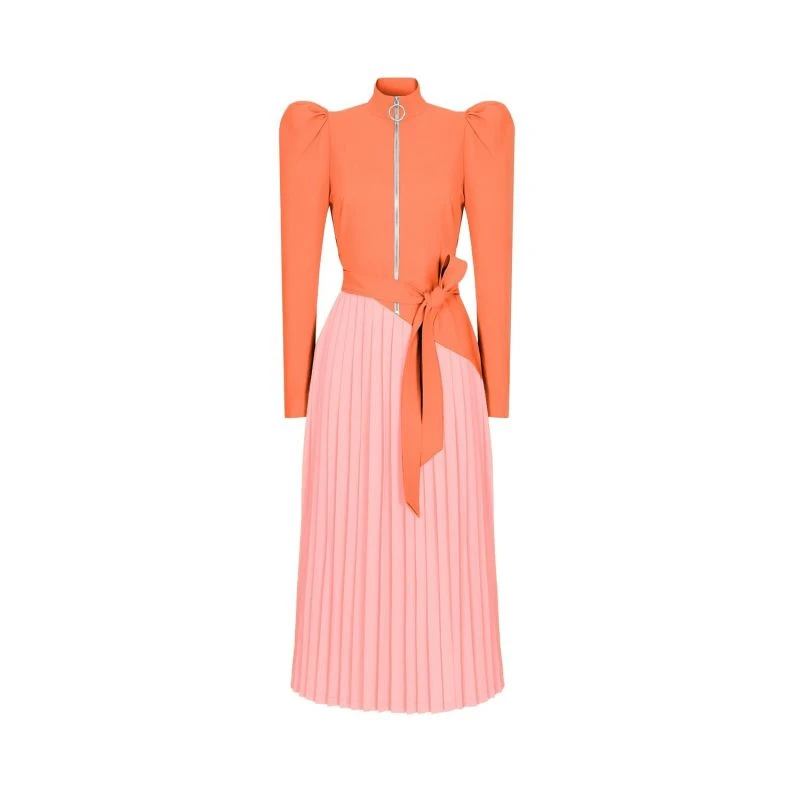 Full length straight cut, pleated back and half-pleated front with long front colored zipper.