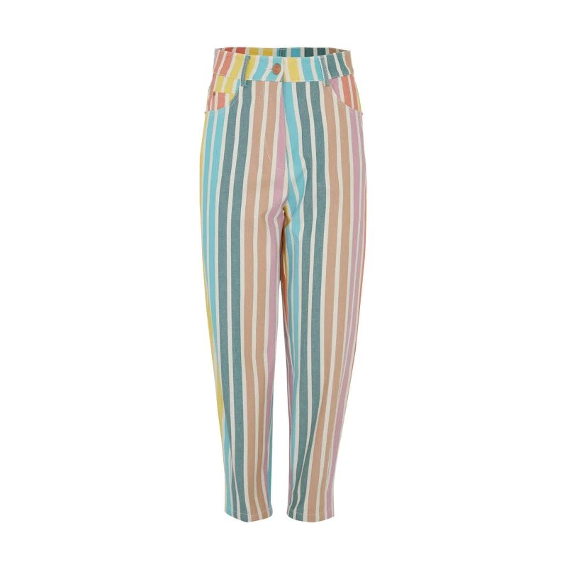 High-waisted mom denim pants. Side pockets. Button and zipper closure.