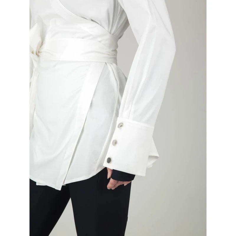 Cloud-like blouse decorated with a volumnious collar and cuffs can perfectly match any weather and occasion. Wear it separately or use like a top layer — a touch of the royal motifs will keep your majesty in the lime light anyway.