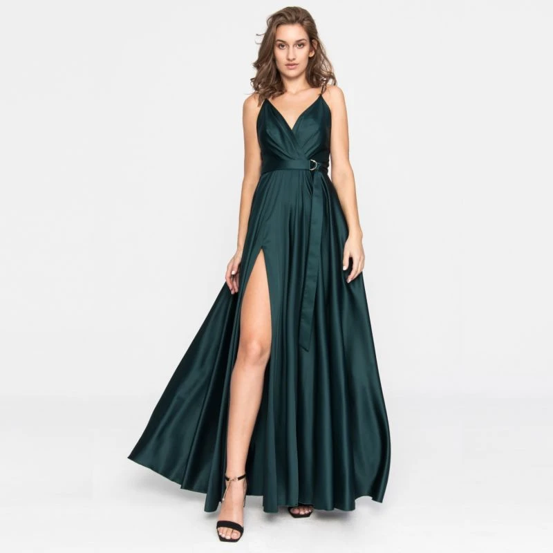 Satin Long Dress Dark Emerald Green