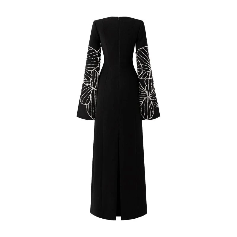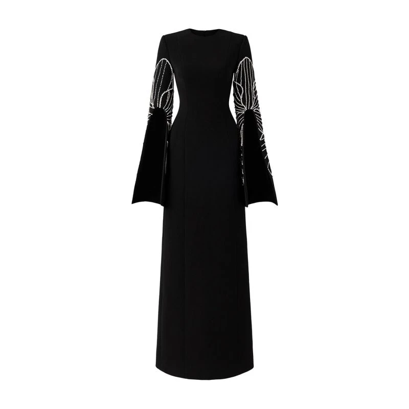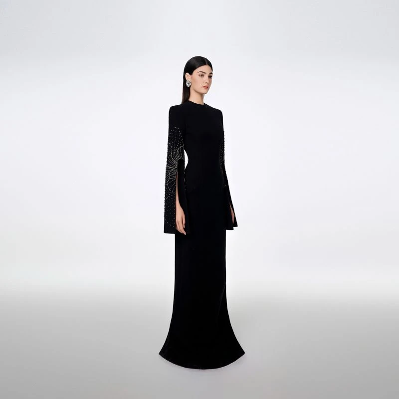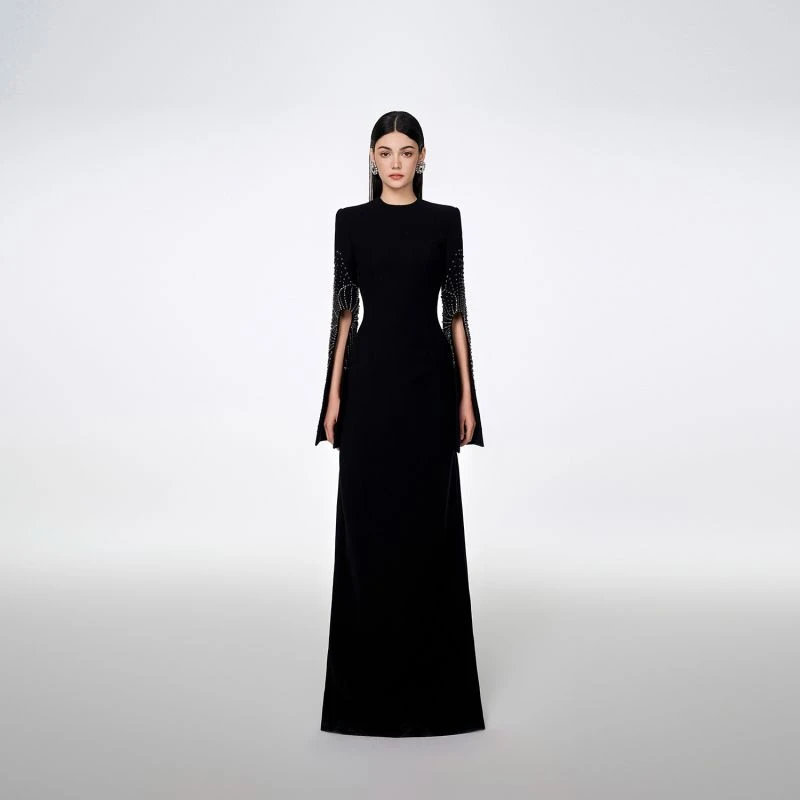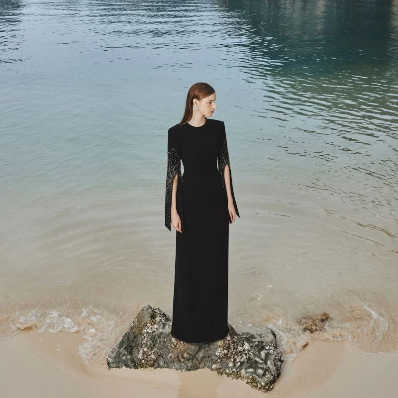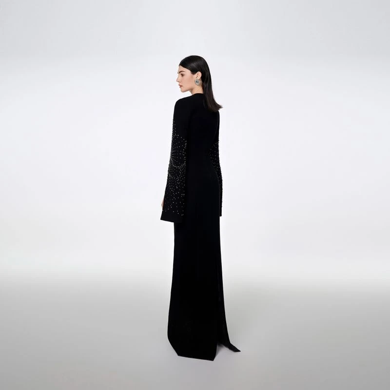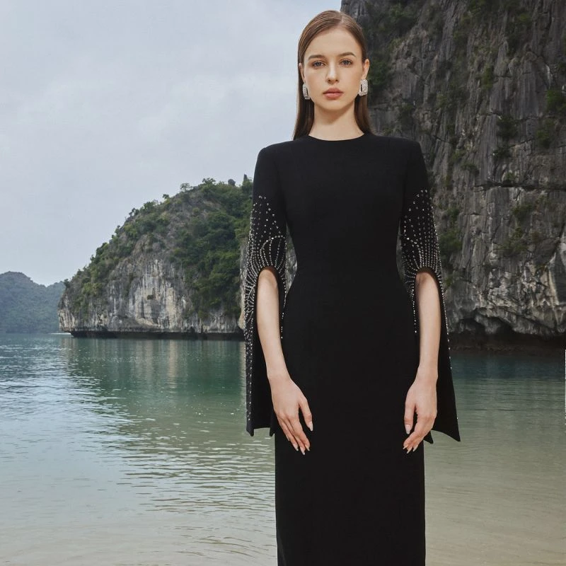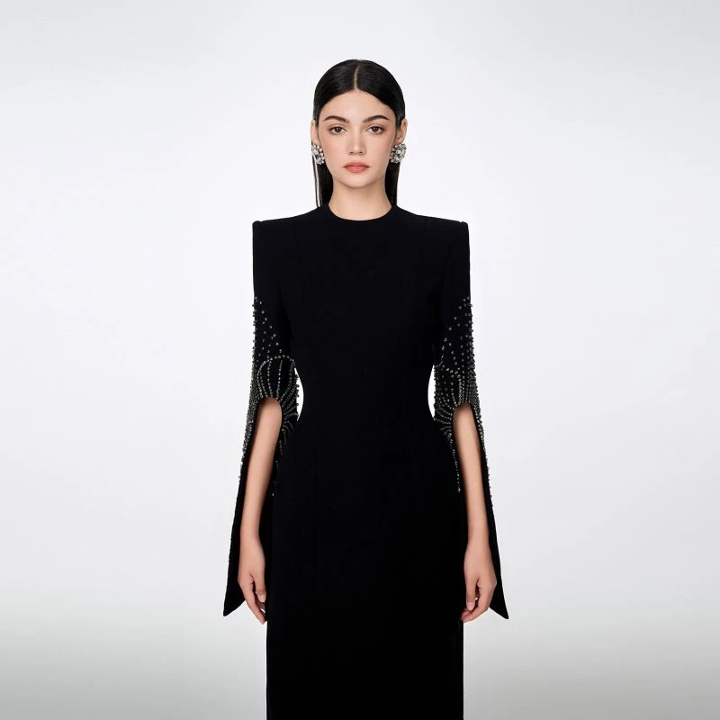 Loyal to its commitment to modern, dynamic and chic fashion, Tracy Studio presents a stunning bodycon dress with stone embellishment on sleeves which are slit for wearers’ convenience. The dress is a blend of advanced tailoring techniques and meticulous attention to detail. The addition of luxurious stone details showcases Tracy’s dedication to creating high-end, contemporary fashion pieces. Perfect for parties and special events, this dress is sure to turn heads and make a bold fashion statement.