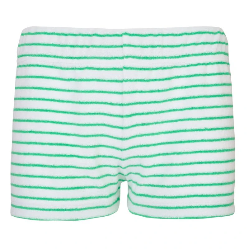 Seen here in our crisp White/Apple supersoft, stretchy towelling, these shorts feature a wide elasticated waistband that sits very comfortably on the hips.