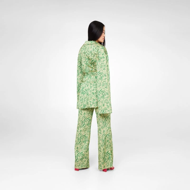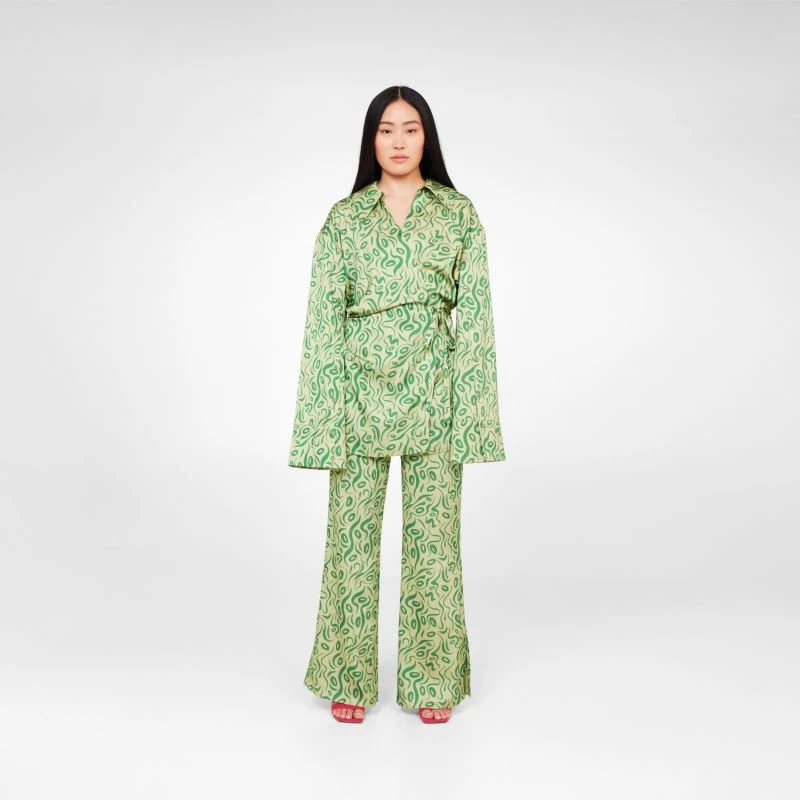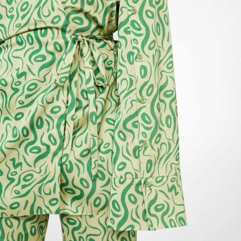 Patterned wrap green top with tie
