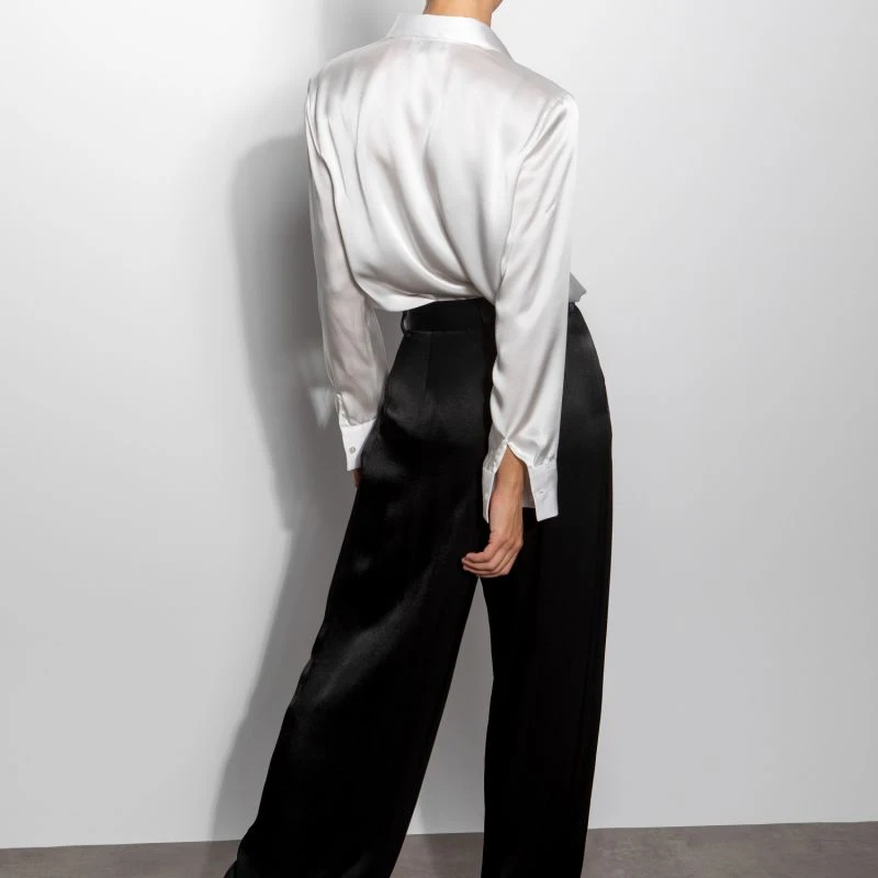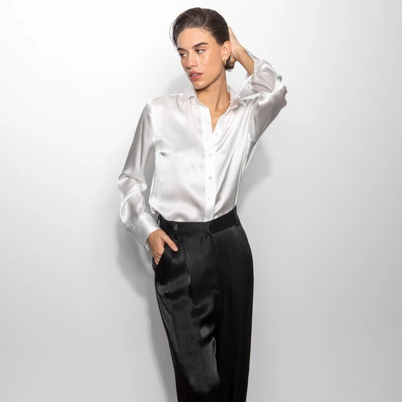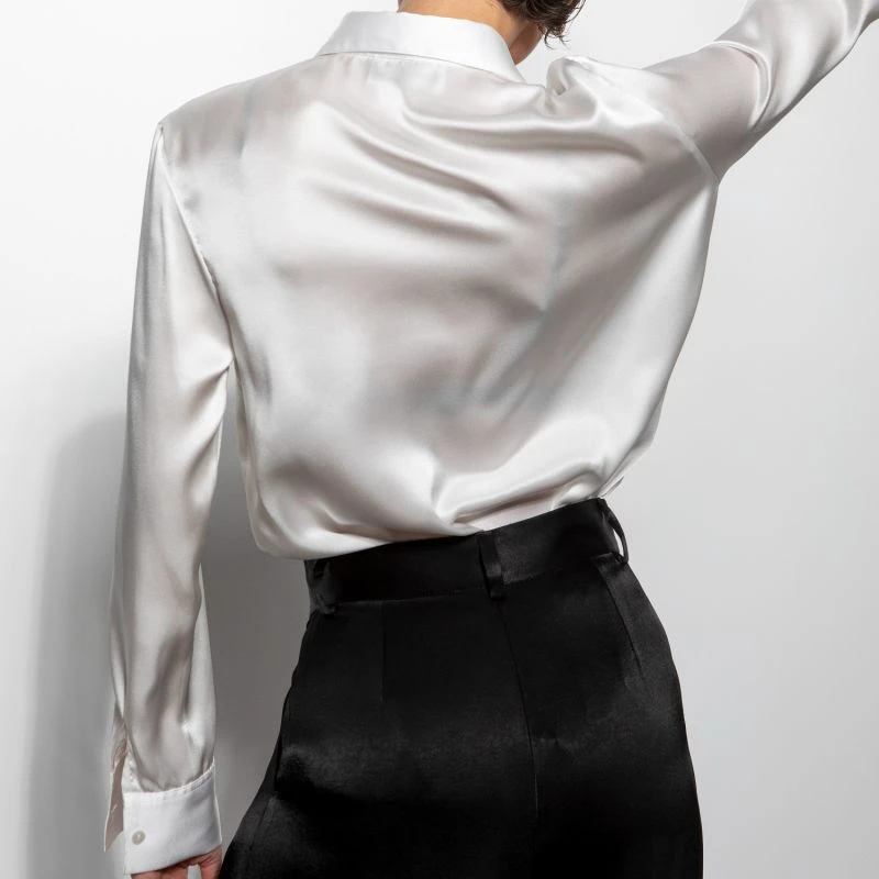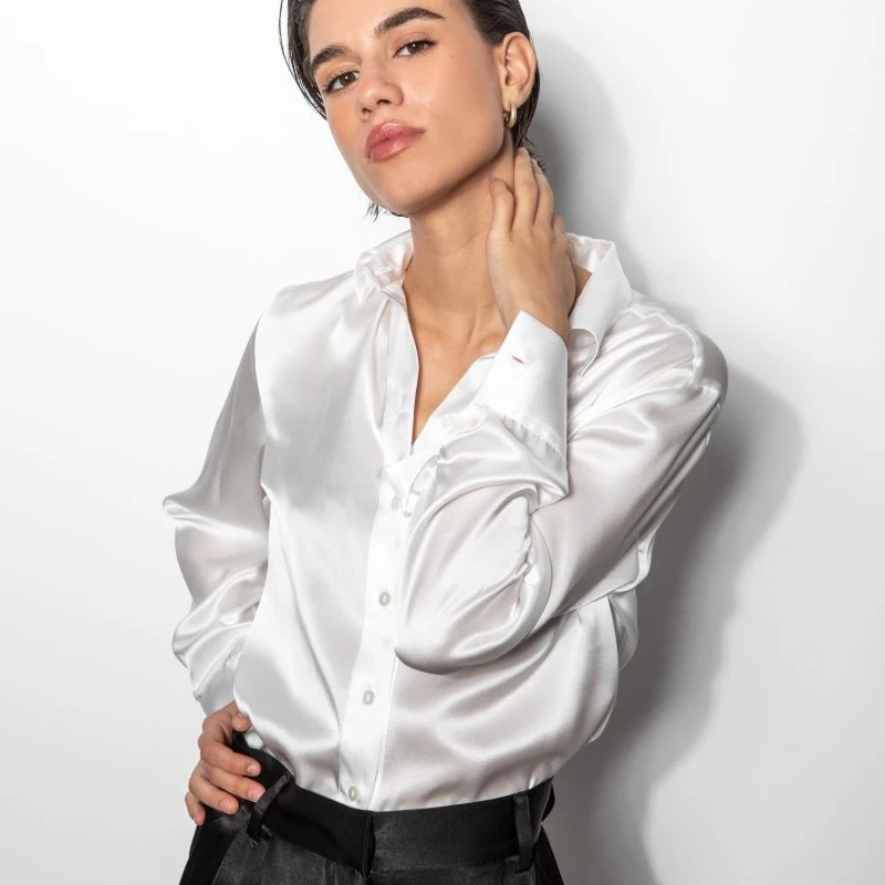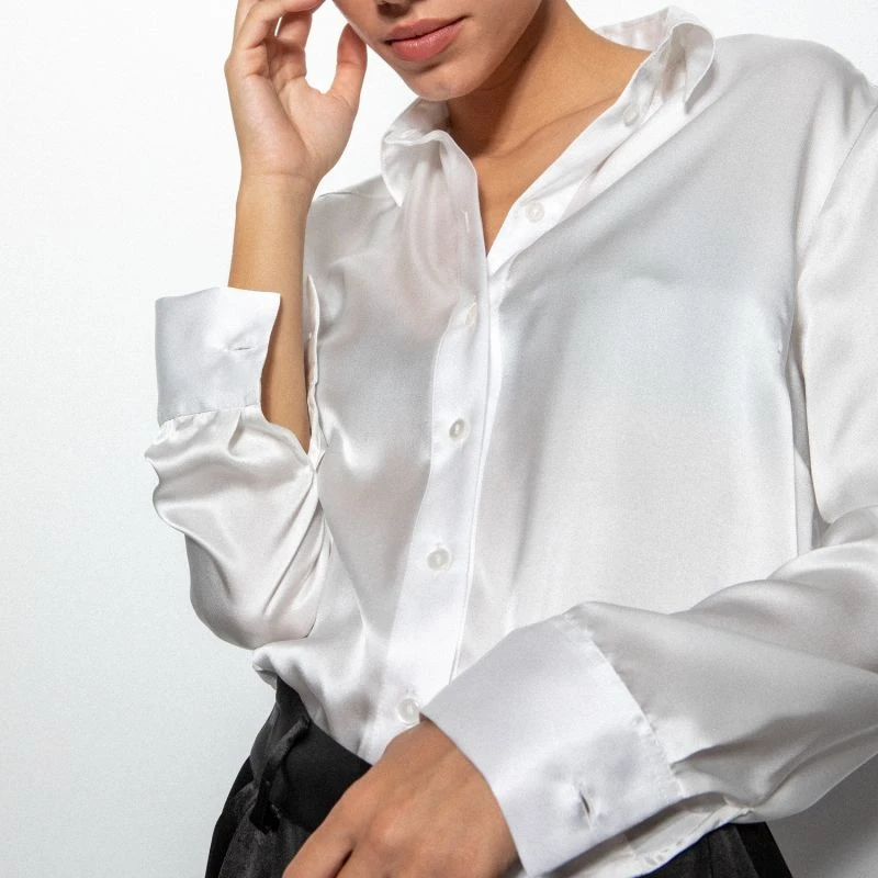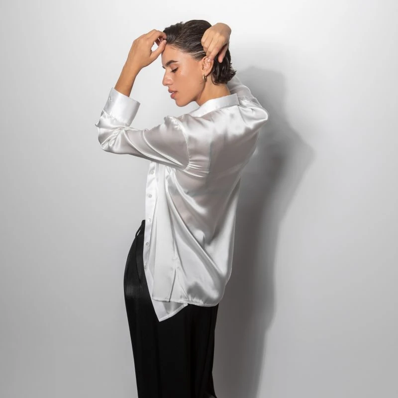 Our new silk shirt is handcrafted from high quality 100% silk fabric. It has a classic fit and button fastenings through front. It’s timeless, day-to-night piece, a versatile wardrobe essential. Pair it with high-waisted pants, blue jeans or bias-cut skirts.
