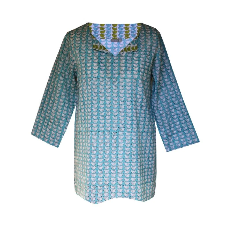 A Loose-fitting Cotton Block Print Tunic Made with Our Now Familiar Lime Tree Design Bird Print.