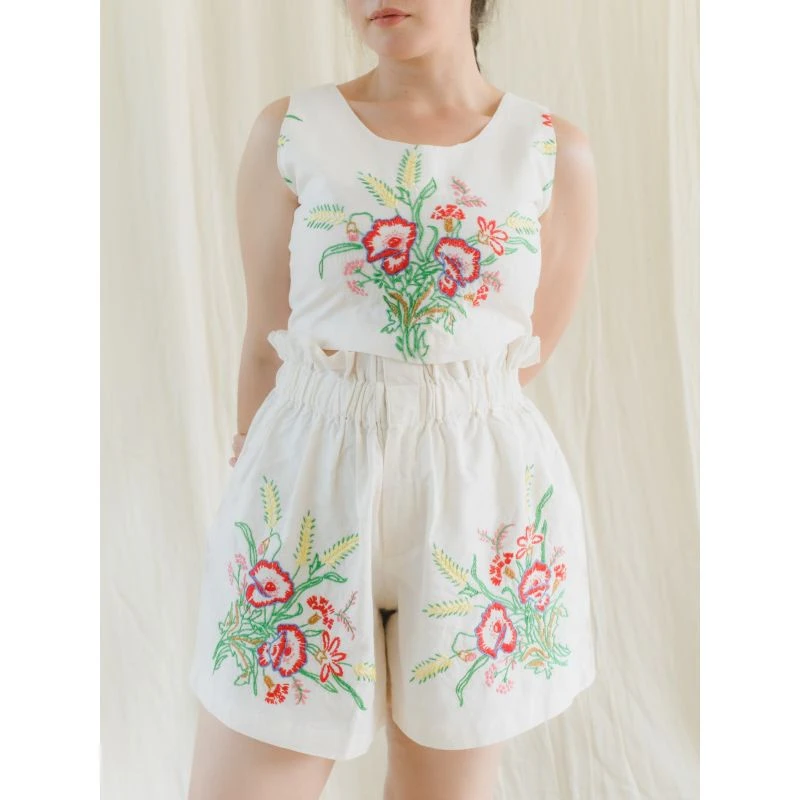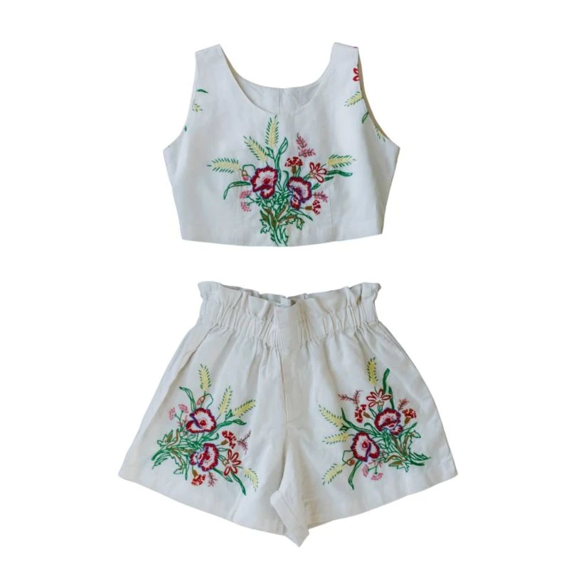 Be the first to review “Upcycle Hand Embroidered Crop Top & Paperbag Waist Shorts Set” Cancel reply